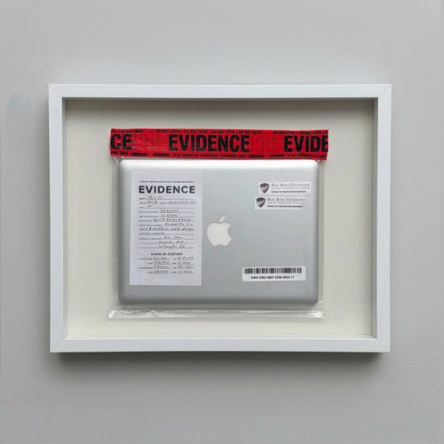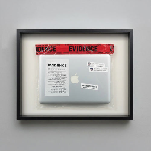 By sealing, labeling, and framing these objects, the work removes them from the noise of the news cycle and fixes them in place.